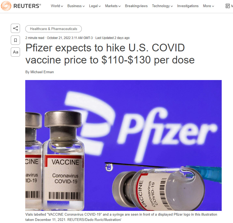 Now that the US tax payers are “forced to finance the poisoning of themselves and their children”, Pfizer plans to hike the price by four times.