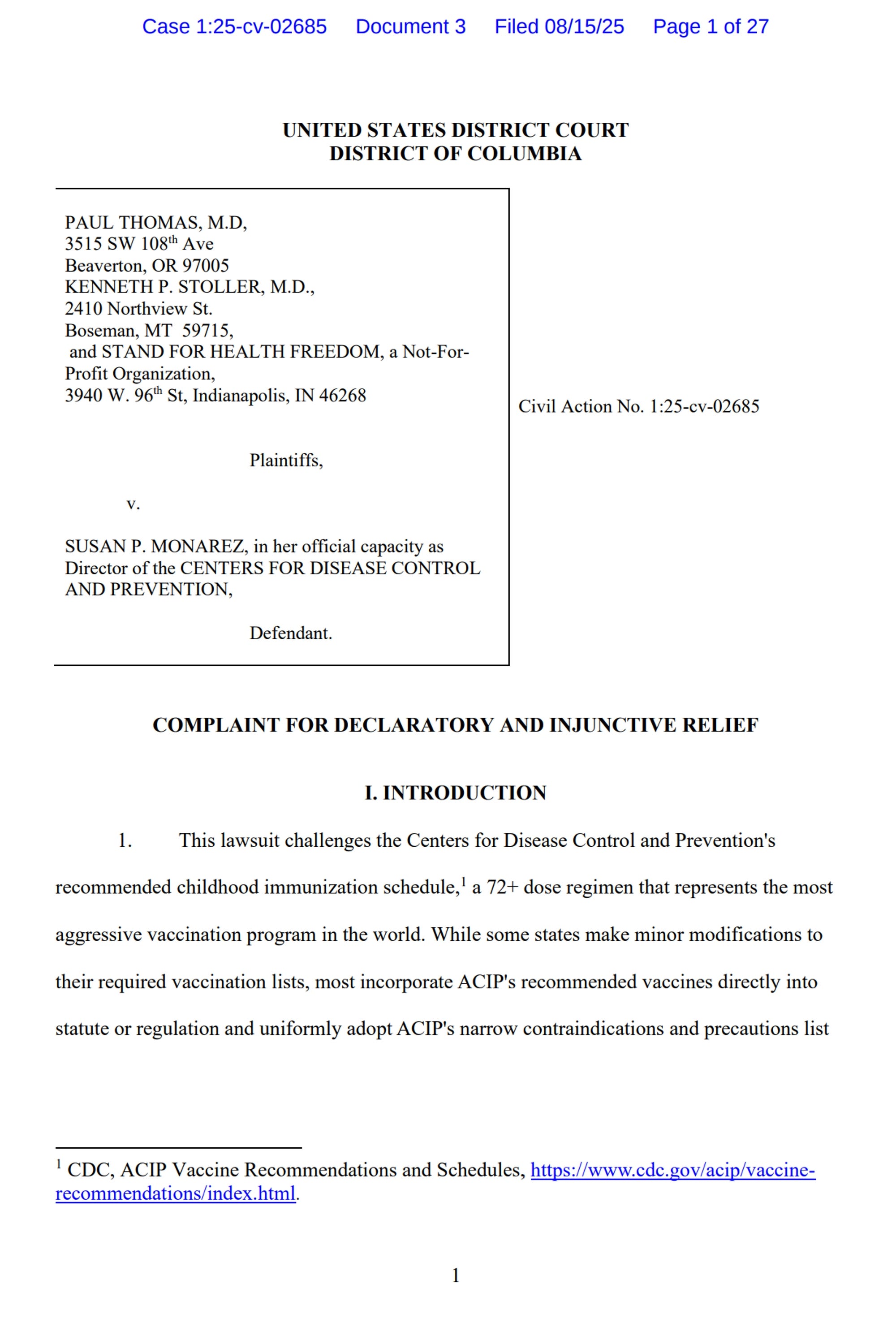 For years, parents were assured that the childhood schedule was grounded in rigorous science, backed by exhaustive safety studies, and overseen by responsible institutions. Doctors who questioned that narrative were treated as outliers, censured, and publicly shamed, even as chronic childhood illness skyrocketed and federal agencies continued to expand the schedule without proper justification. Now, a landmark lawsuit has shattered the illusion. Two pediatricians have shed light on a damning breach of integrity: that the U.S. health authorities never conducted the foundational research required to justify the 72-dose schedule they promote. This legal challenge exposes not only the scientific void beneath federal policy, but the culture of intimidation, retaliation, and censorship used to silence any physician who dared to look too closely. At this link, you can read the lawsuit in full: (Click Here)