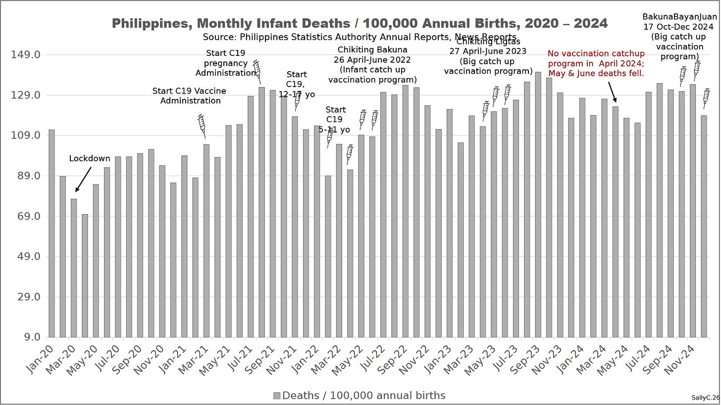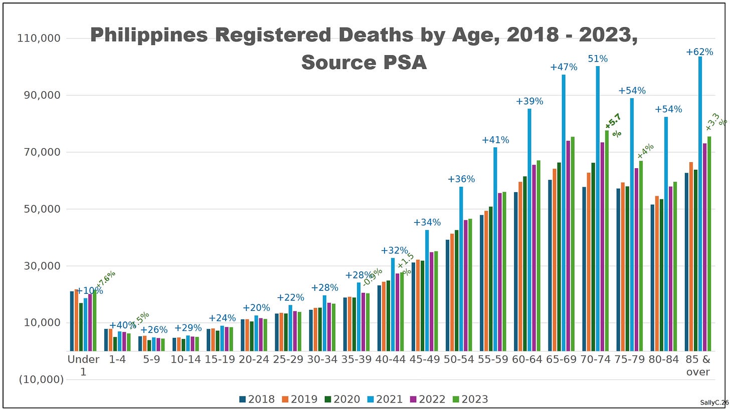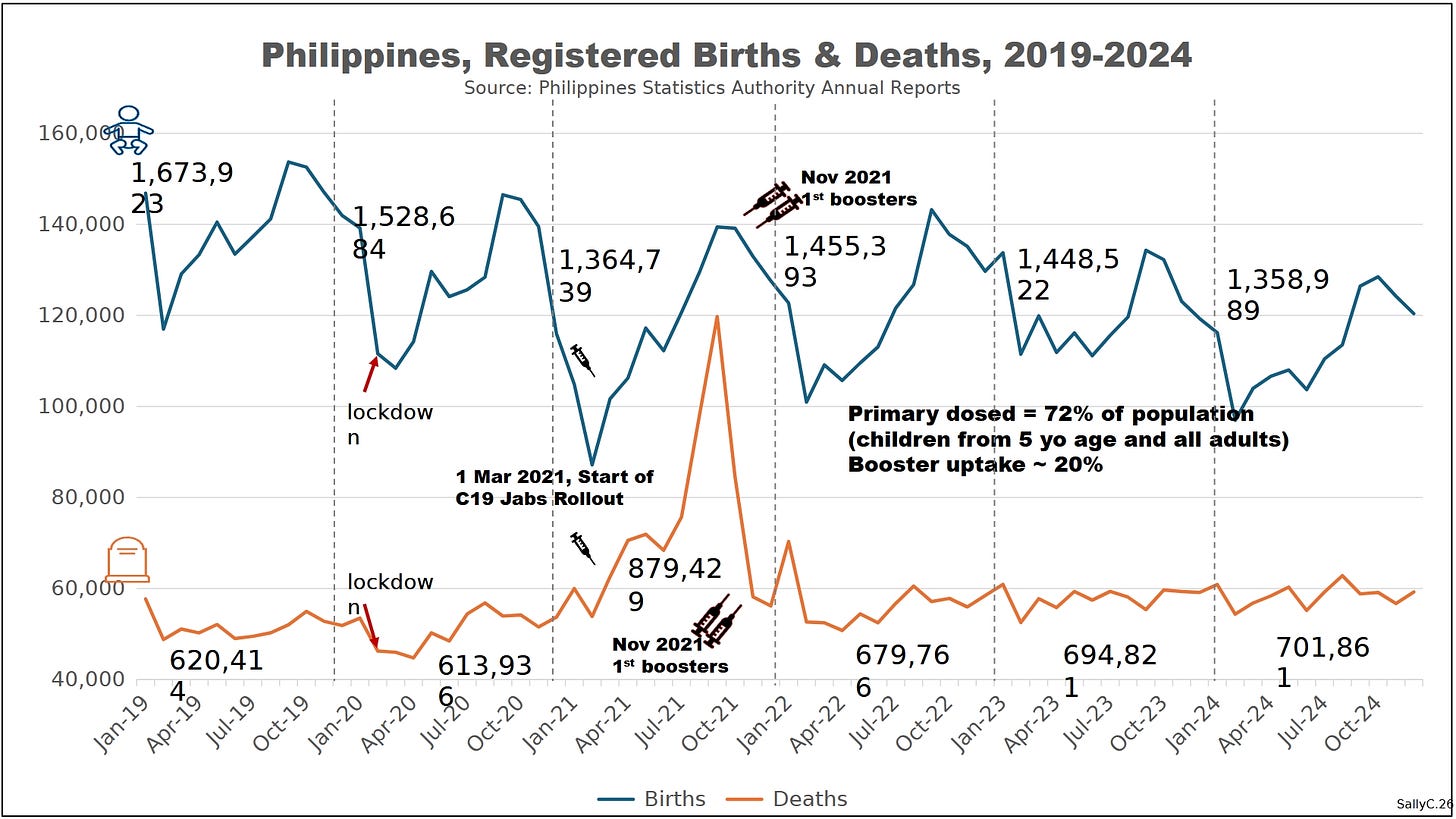 The demographic break appeared immediately after the rollout of COVID “vaccines” in 2021.The Philippines showed a rapid rise in deaths shortly after injections began.