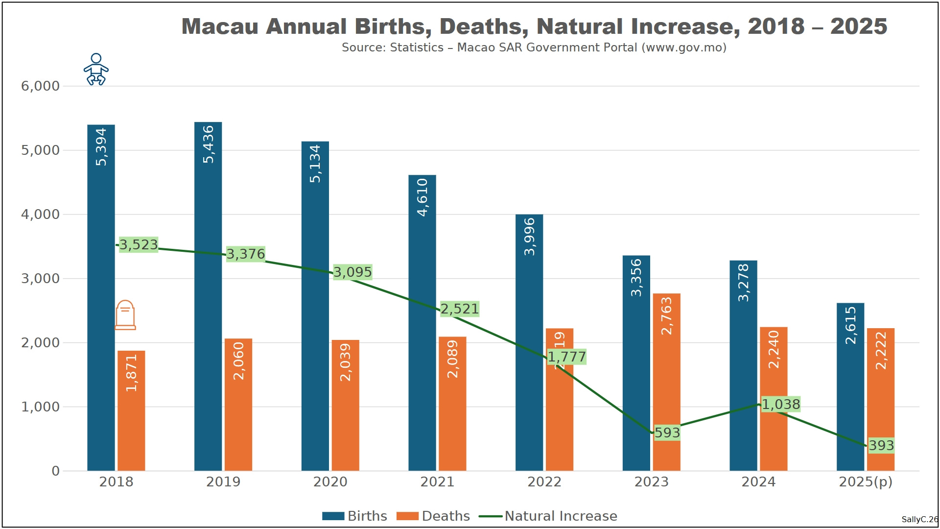 Before 2020, Macau’s births and deaths followed stable, predictable patterns typical of a small, aging population. Fertility was already low, but demographic change occurred gradually rather than abruptly.