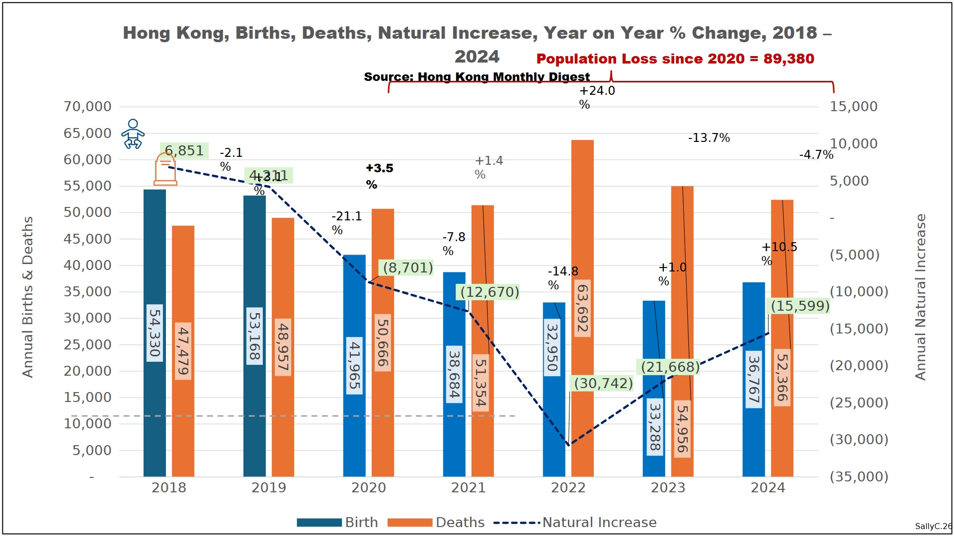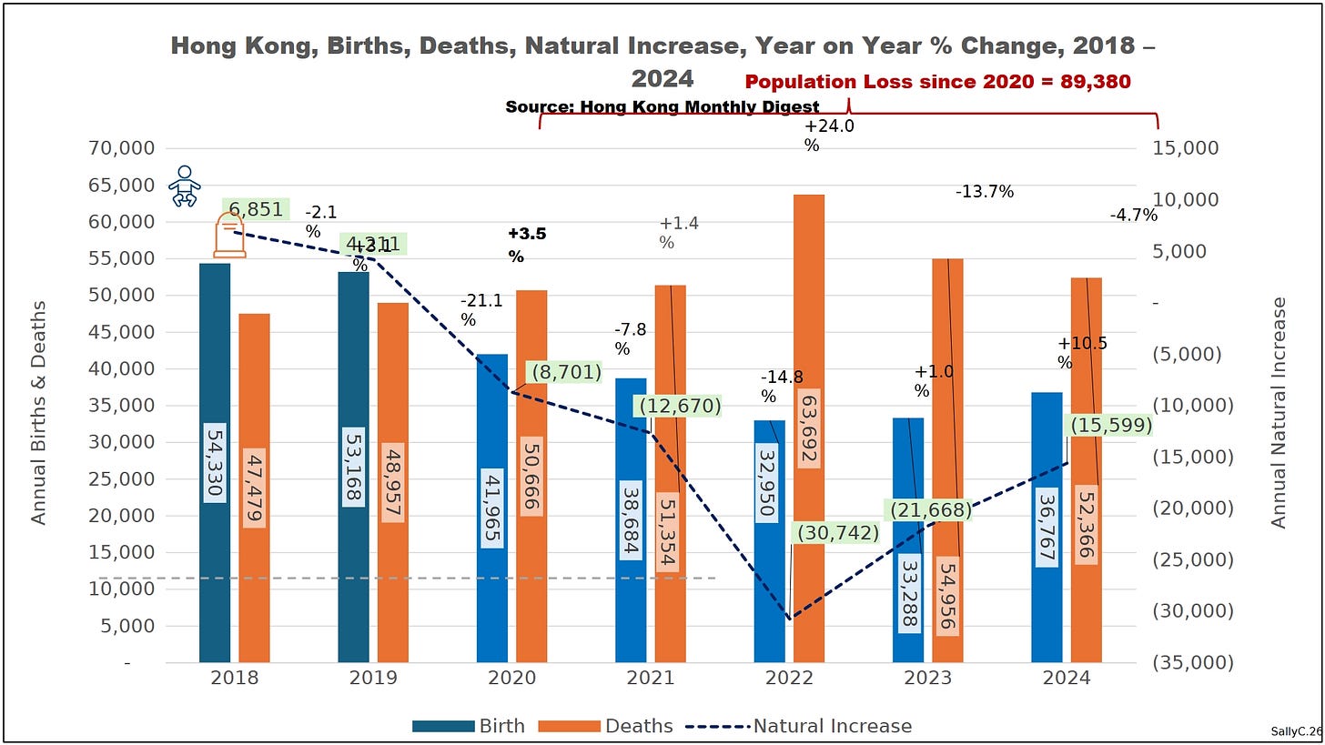 Before 2020, Hong Kong’s births and deaths followed clear and stable patterns typical of an aging but well-documented population. While birth rates fluctuated in response to political and economic conditions, overall mortality remained predictable from year to year.
