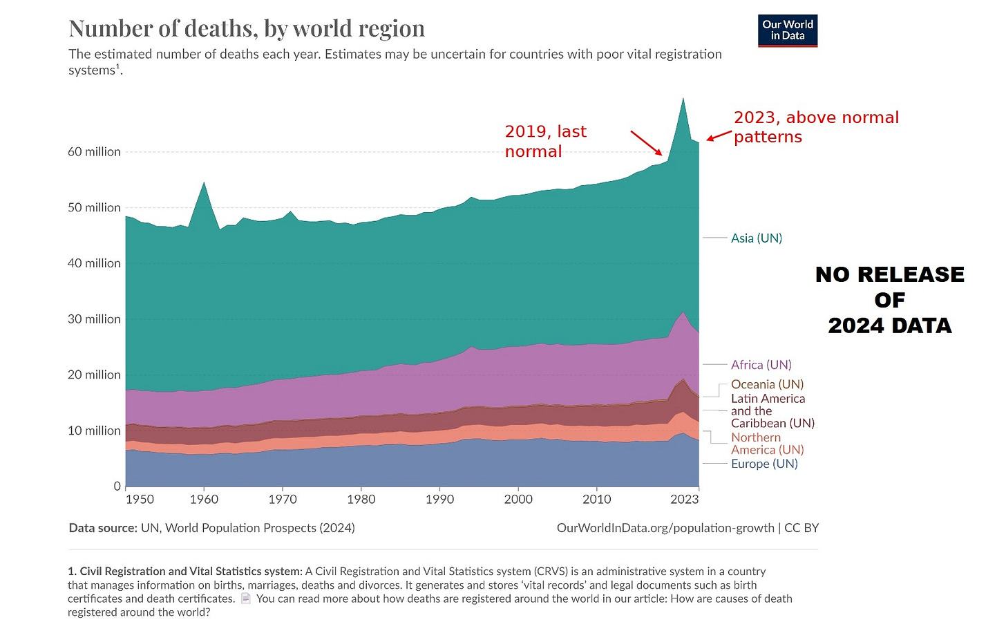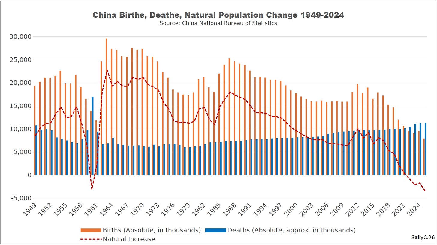 China did not deploy mRNA “vaccines,” relying instead on domestically produced injections such as Sinovac, yet exhibited the same post-2021 rise in mortality, indicating that the population-level harm is not confined to a single medical product. Deaths began to exceed births, pushing China into negative natural population growth. By 2023, official figures indicate population losses are at around one million people per year.