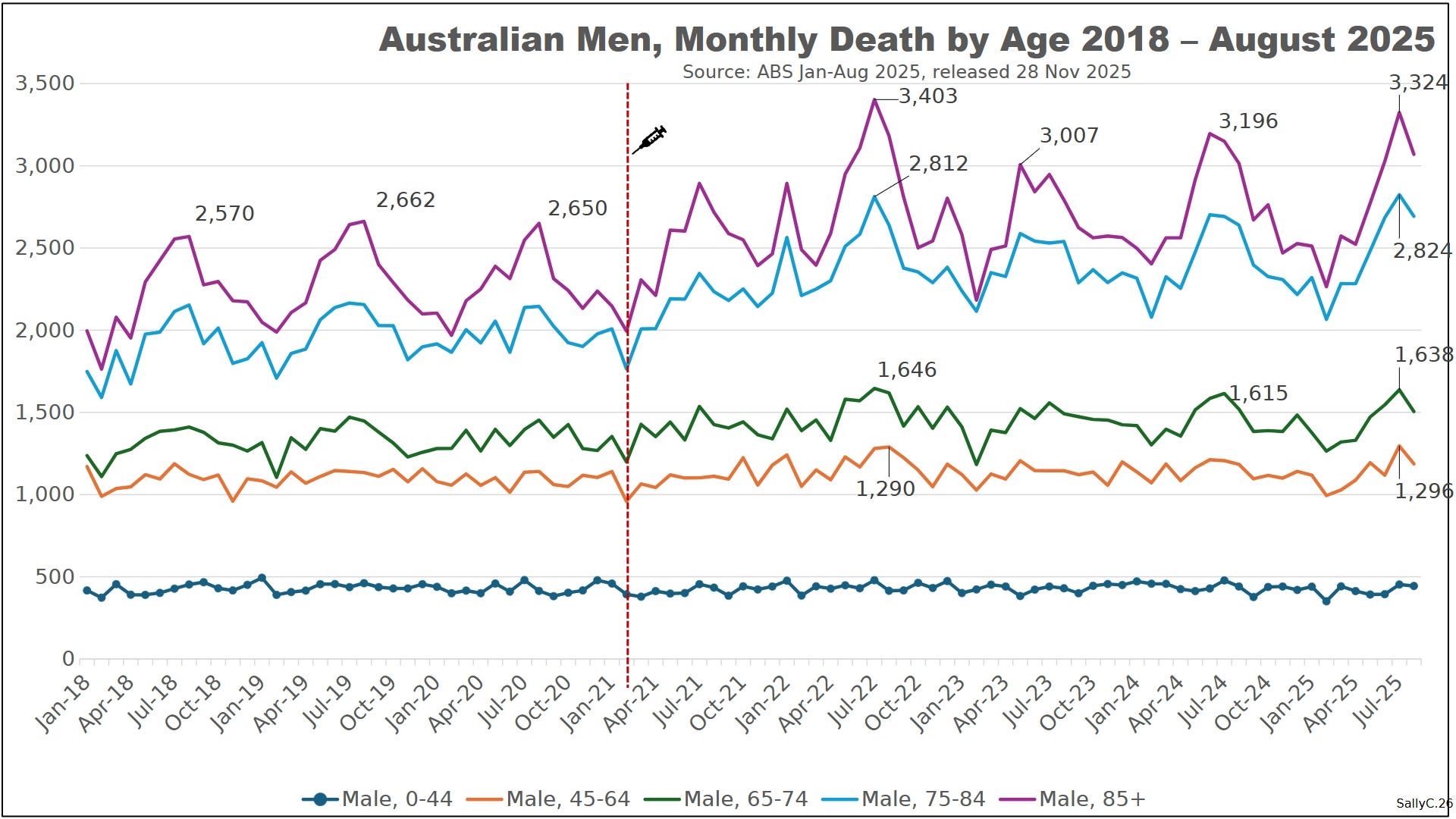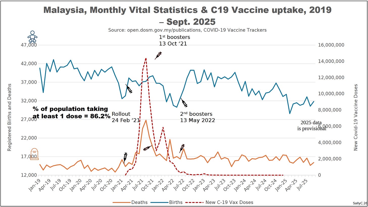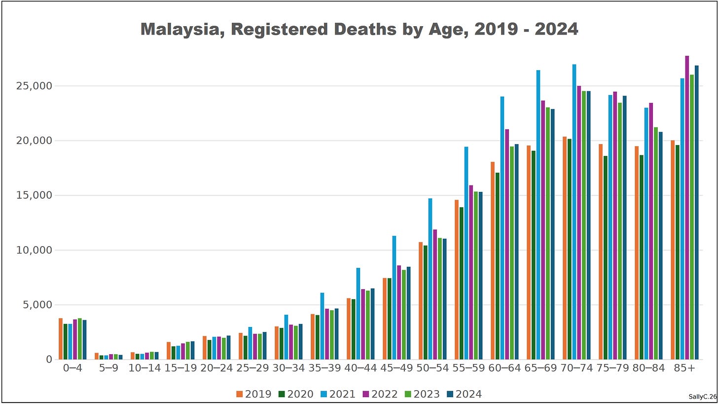 The demographic shift appeared early in 2021, coinciding with Malaysia’s rapid rollout of COVID “vaccines.” Sally Clark noted that deaths rose sharply soon after injections began, rather than later in the period.