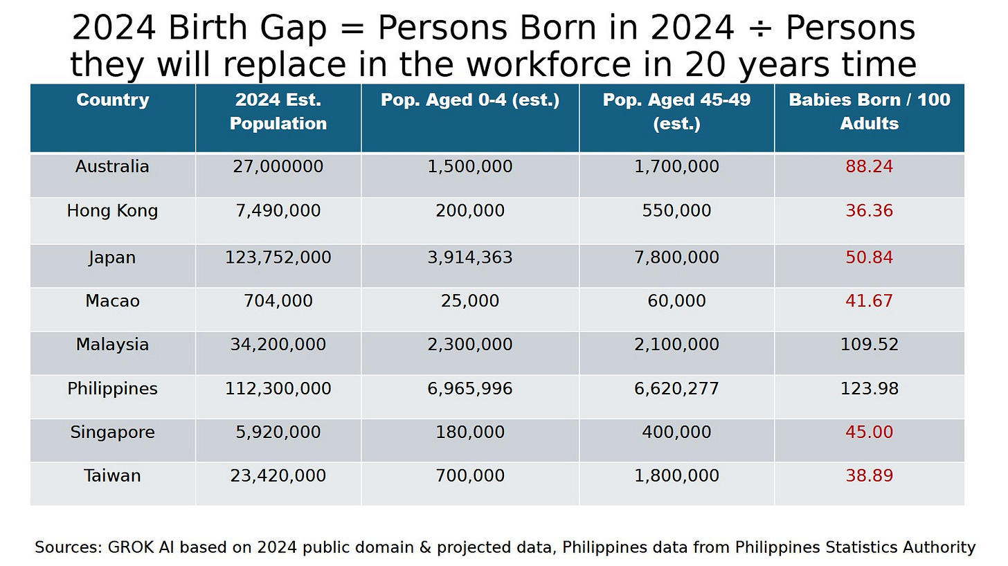 The consequences for labour force replacement are concerning. Fewer births today mean fewer workers in two decades, while elevated mortality accelerates the loss of experienced labour now.