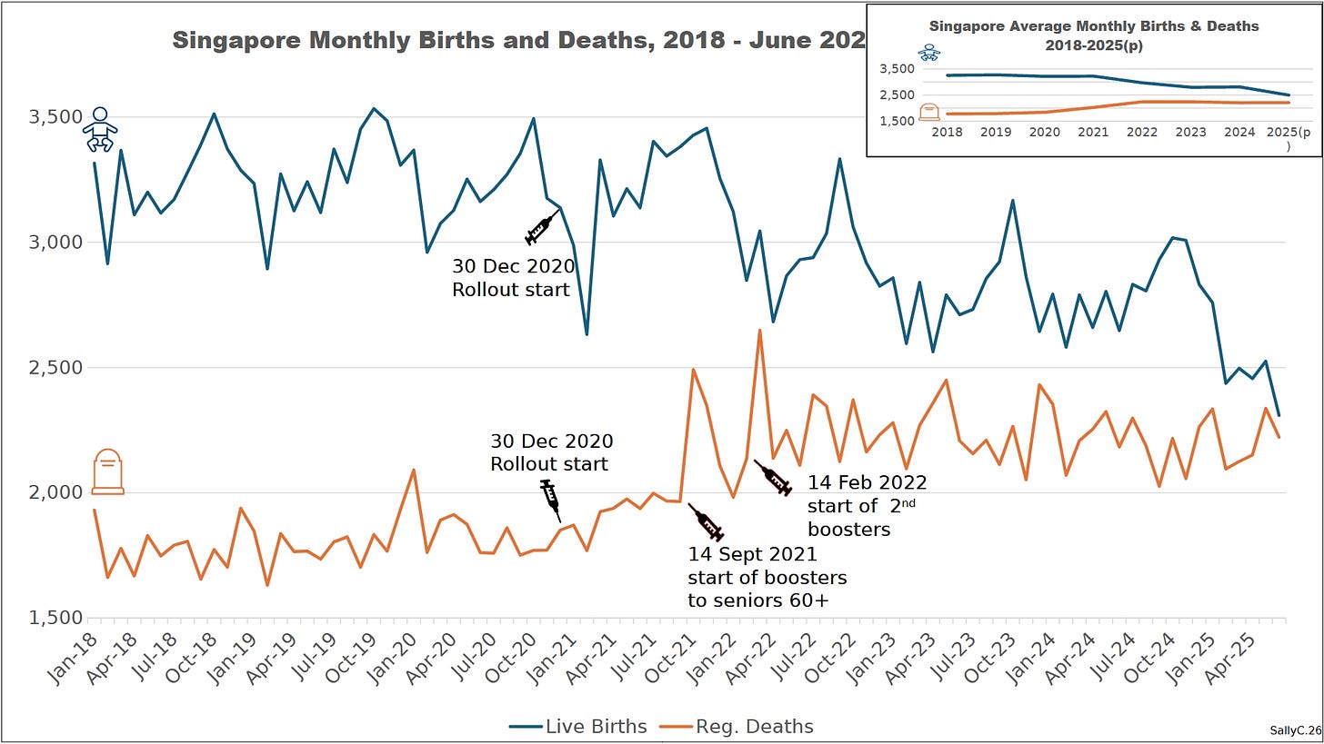 The shift appeared after 2021, following Singapore’s rapid and near-universal rollout of COVID “vaccines” and subsequent booster campaigns.