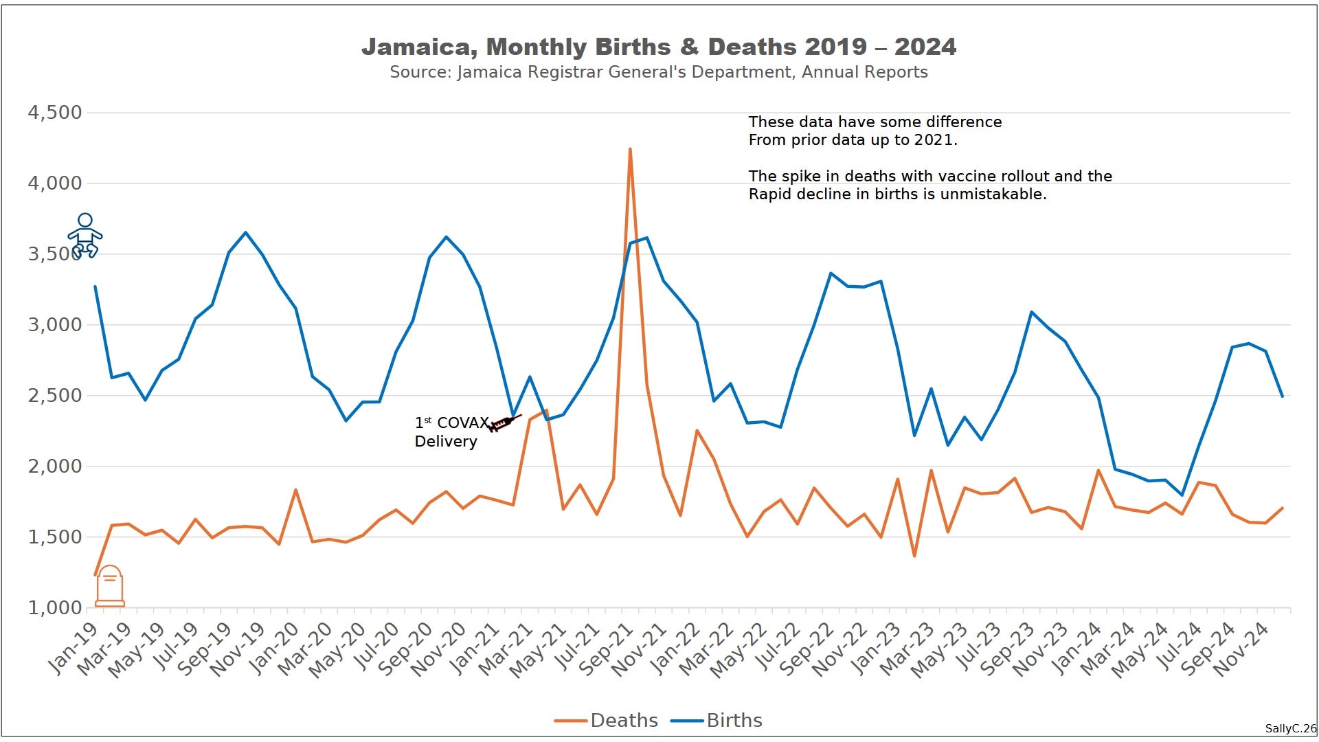 Over the last four years, scientist and engineer Sally Clark has undertaken an extensive, independent examination of national vital statistics from countries around the world. Her work focuses on the most basic demographic indicators available: births, deaths, excess mortality, and natural population change.