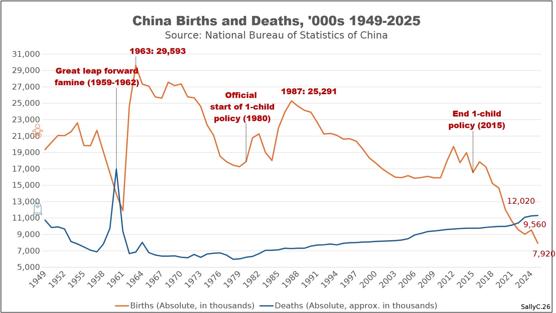 While the accuracy of China’s reported data remains uncertain, the direction of change is clear. Prior to 2020, China’s population trends were shaped by long-term demographic pressures, including an aging population and decades of low fertility following the one-child policy. Even under these constraints, births continued to outnumber deaths, allowing overall population growth to remain marginally positive.
