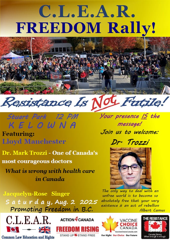 C.L.E.A.R. Freedom Rally, 12:00 PMKelowna – August 4