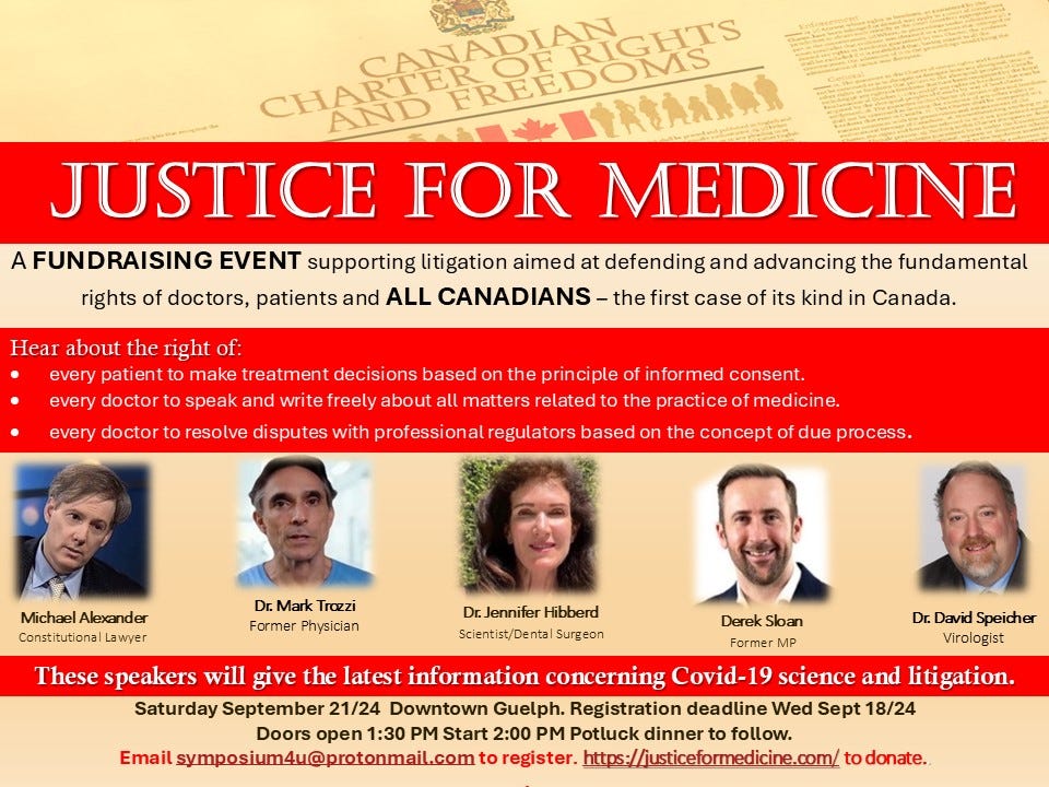 Event: Also on September 21st I will join Michael Alexander, Dr Jennifer Hibberd, Derek Sloan, Dr Chris Shoemaker, and Dr David Speicher for an intimate information and fund raiser for Justice For Medicine in Guelph. Please join us. Email symposium4u@protonmail.com to register. For more info and donations visit Justice for Medicine.